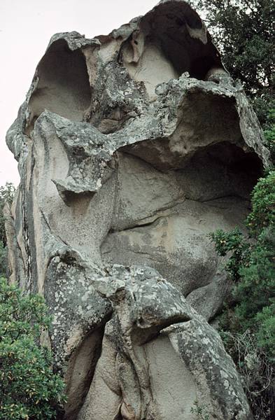 1958. Frankreich. Korsika. bizarrer Felsen.