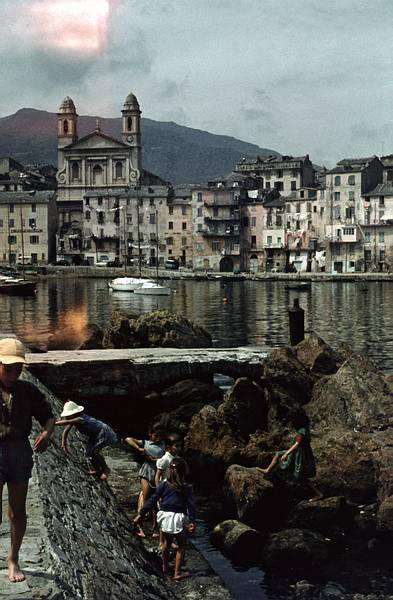 1958. Frankreich. Korsika. Bastia. Kinder am Hafen.