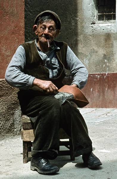 1958. Frankreich. Korsika. Schuster. Mann mit Zigarre. Schuhmacher