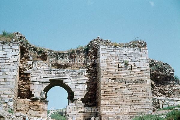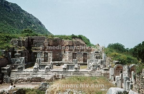 1963. Griechenland. Agora. Stadt Kos. Celsusbibliothek, rechts der Ausgang zur Agora.