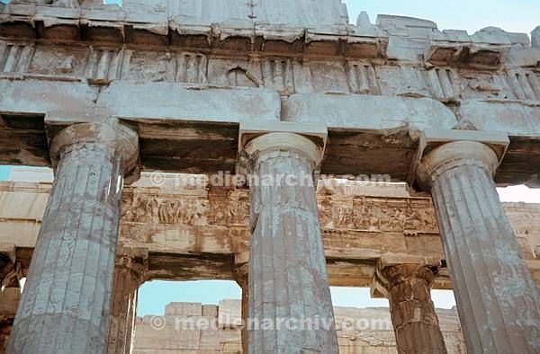 1963. Griechenland. Athen. Akropolis. Durchblick auf den Fries des Parthenon.