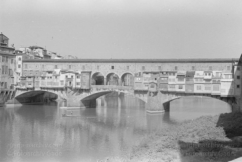 1930r. Italien. Toskana. Florenz. Italia. Toscana. Firenze. Italy. Tuscany. Florence. Ponte Vecchio über dem Fluss Arno