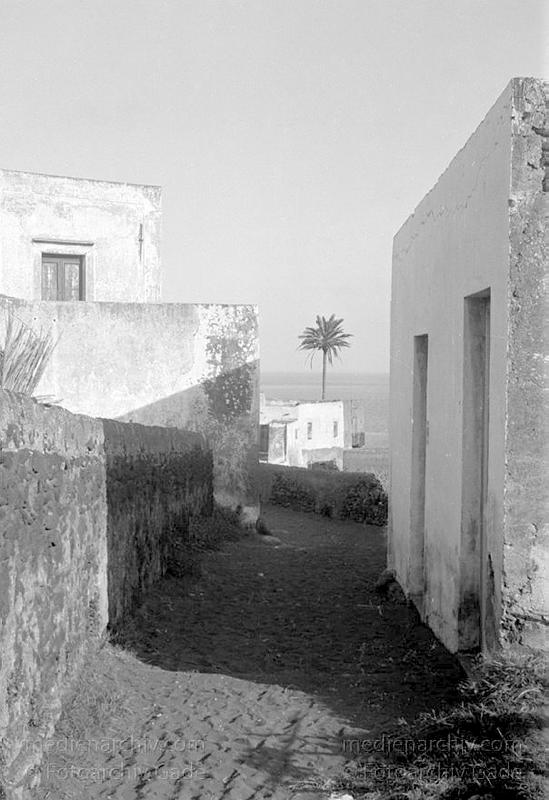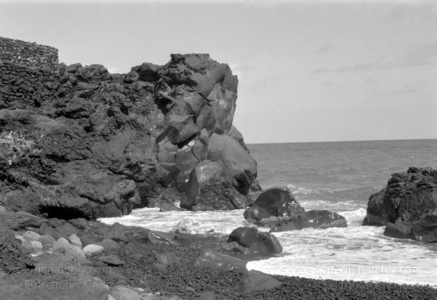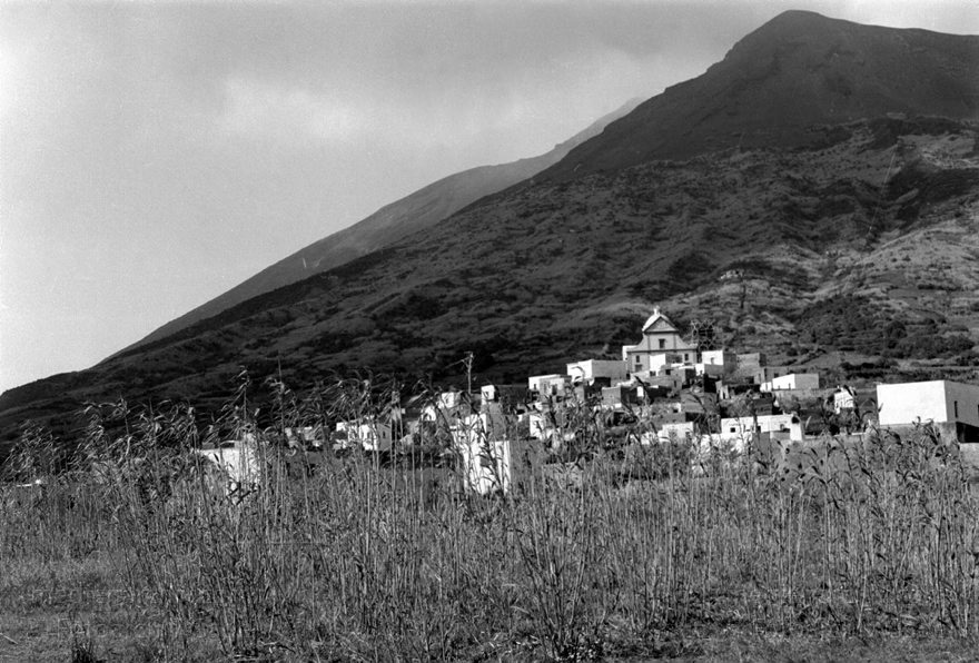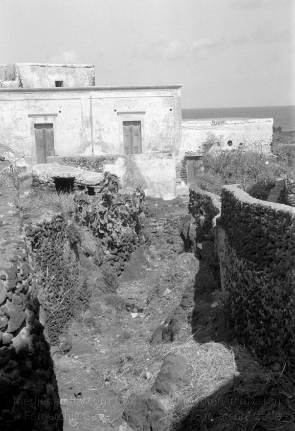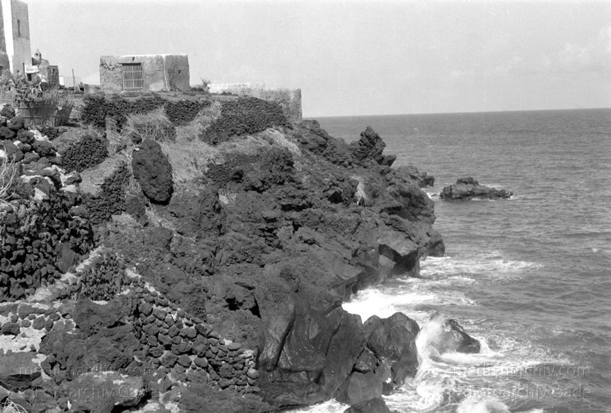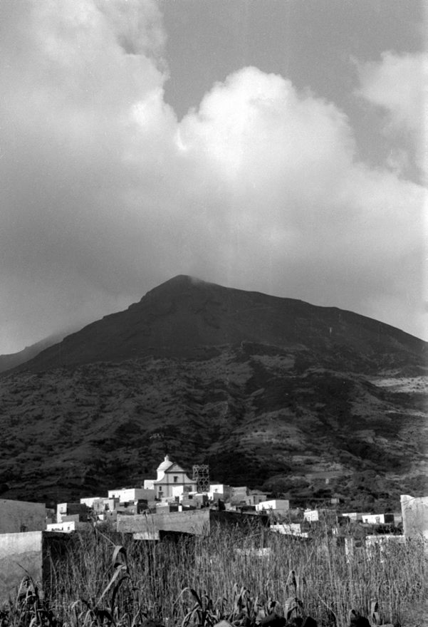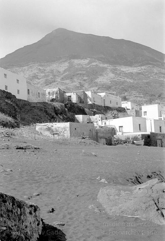 1950er. Italien. Liparische Inseln. Stromboli mit aktivem Vulkan. Italy. Aeolian Islands. Italia. Isola di Stromboli