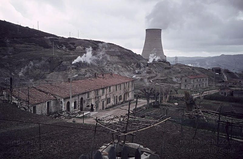 um 1960. Italien. Toskana. Larderello. Erdwärme. Kühlturm. Italy. Italia. Toscana