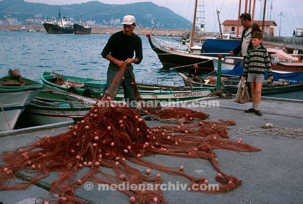 1964. Italien. Ligurien. Imperia. Boote. Meer. Hafen. Fischer