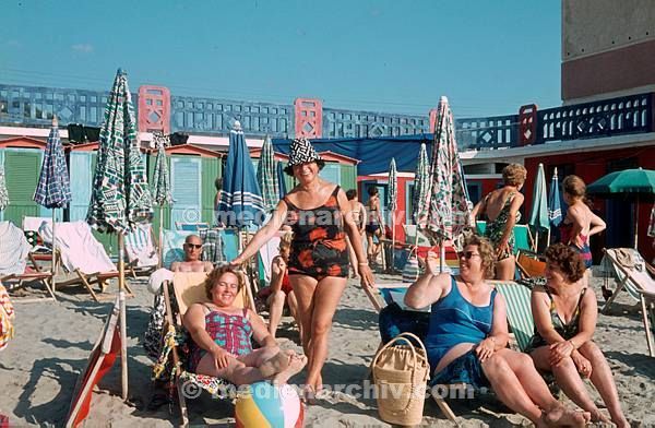1964. Italien. Ligurien. Imperia. Strand. Sonnen. Frauen. sonnen