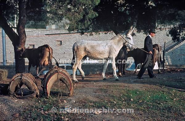 1964. Italien. Ligurien. Imperia. Pferde. Rinder