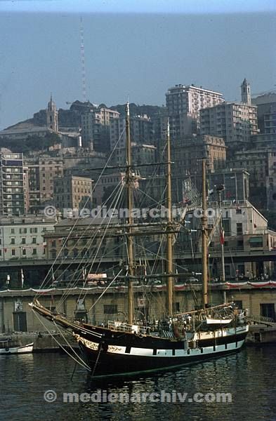 1968. Italien. Genua. Italy. Italia. Genoa. Segelschiff. Dreimaster. Schifffahrt. Hafen. Mittelmeer