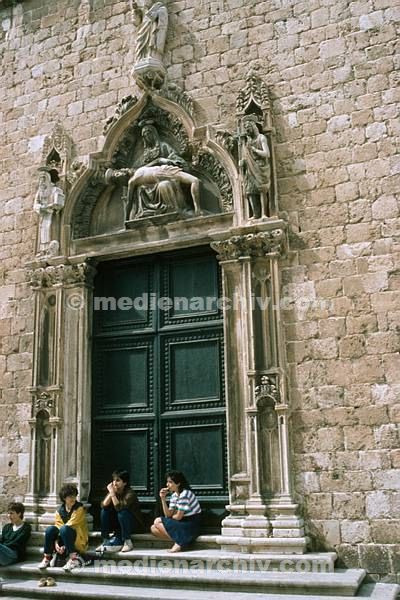 Mai 1983. Kroatien. Dalmatien. ehemaliges Jugoslawien. Kirche am Mittelmeer