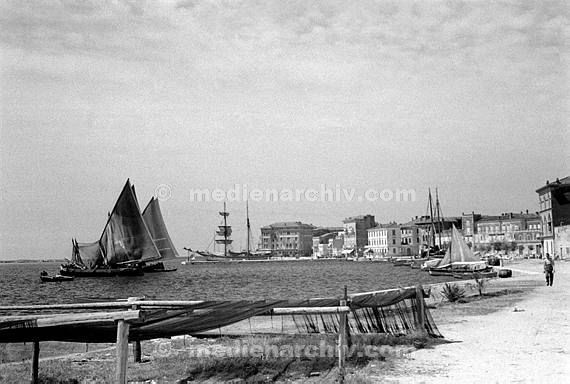 1931. Jugoslawien. Slowenien. Slovenia. Piran. Segelschiffe im Hafen