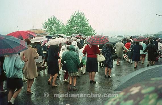 1970er. Luxembourg. Luxemburg. Menschen mit Regenschirmen