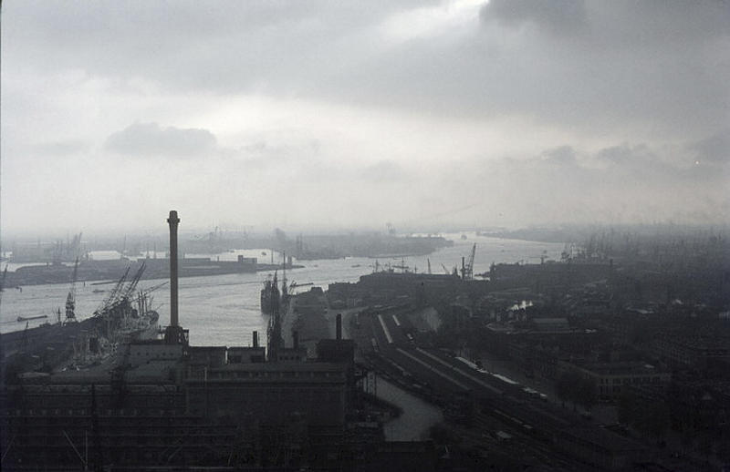 1965. Holland. Niederlande. Netherlands. Rotterdam. Schwimmkran. Schiffe. Hafen