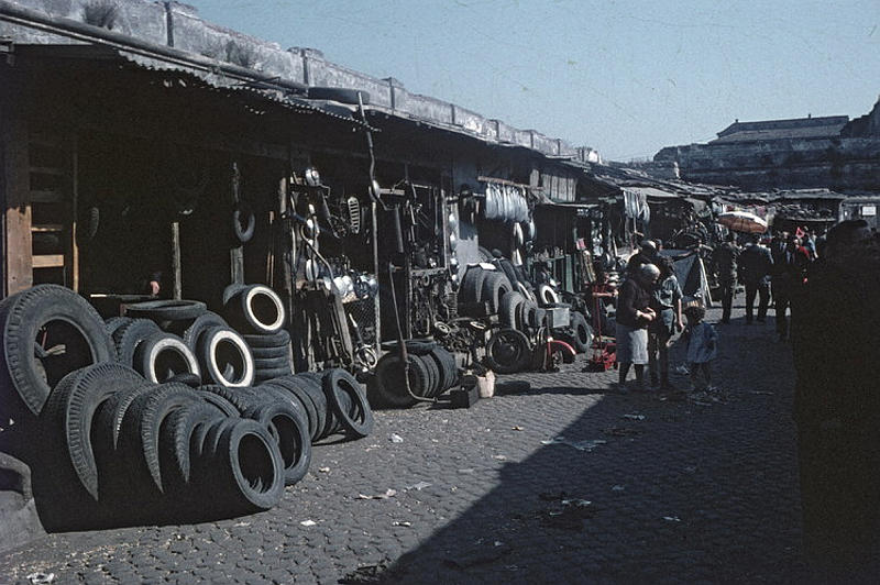 1960. Holland / Holland. Niederlande. Netherlands. Flohmarkt in Rotterdam. Alte Reifen