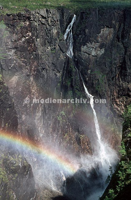 1967. Skandinavien. Norwegen. Regenbogen am Wasserfall