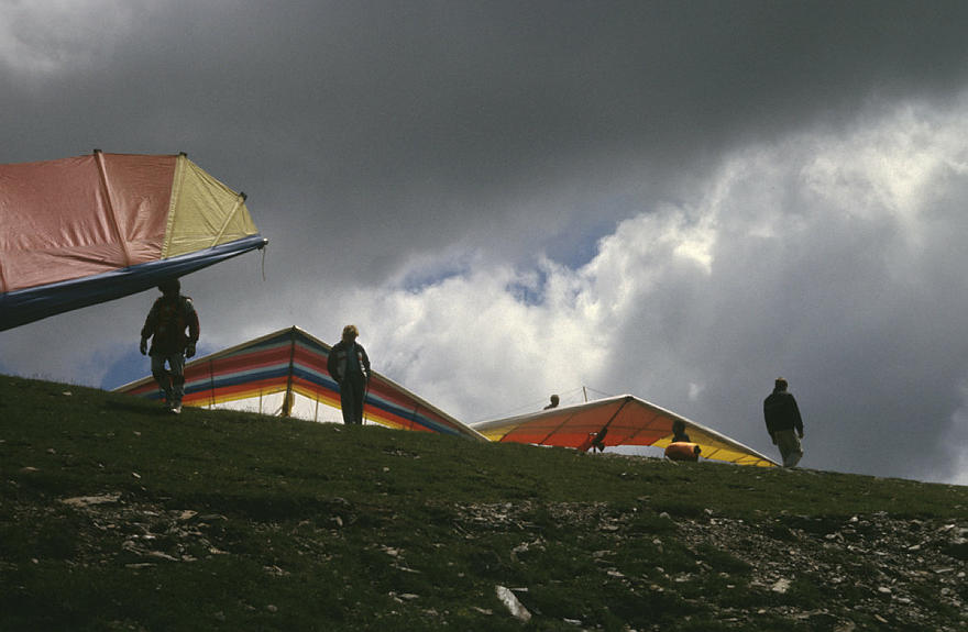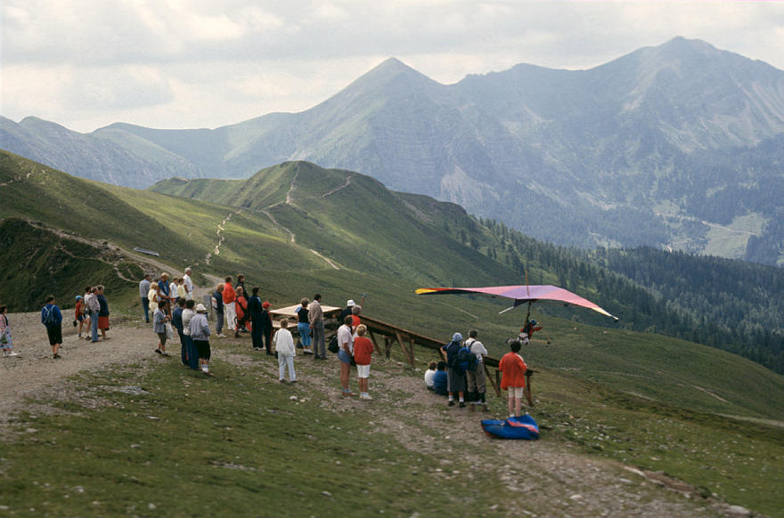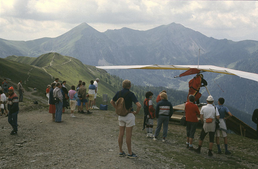 1980. Österreich. Kärnten. Alpen. Gebirge. Berge. Windgleiter. Drachenflieger. Deltaflieger. Sport Alpen