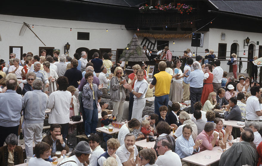 1980. Österreich. Kärnten. Alpen. Gebirge. Berge. Restaurant. Fest. Wirtshaus