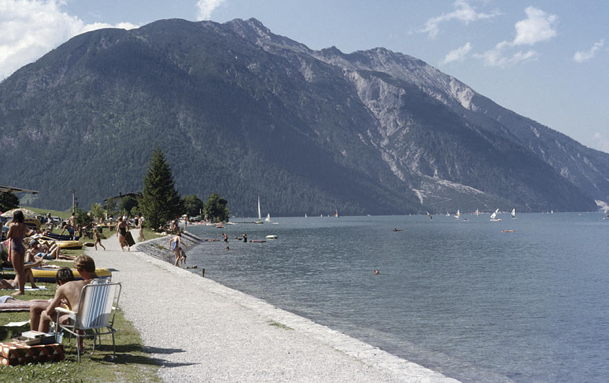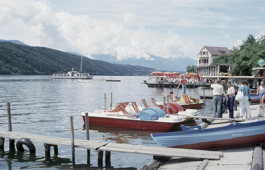 1980. Österreich. Kärnten. Alpen. Gebirge. Berge. See. Boote. Alpen