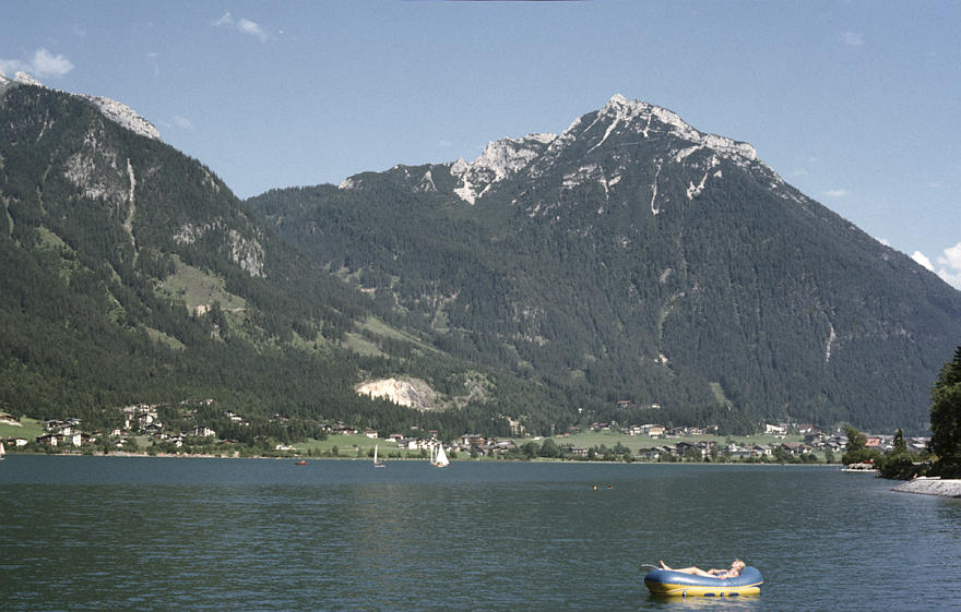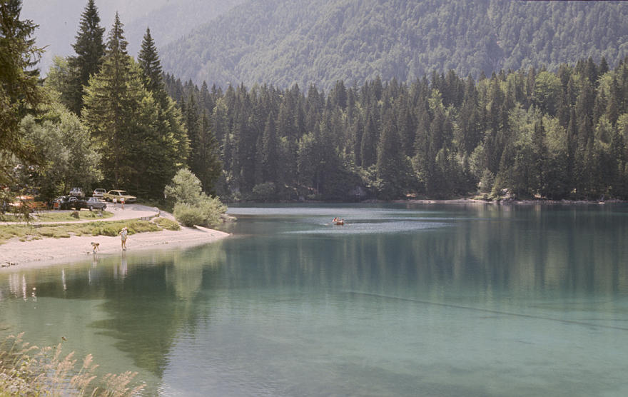 1980. Österreich. Kärnten. Alpen. Gebirge. Berge. Bergsee. Schlauchboot Alpen