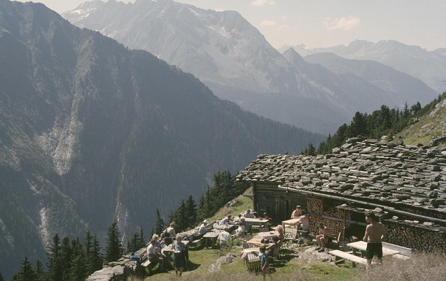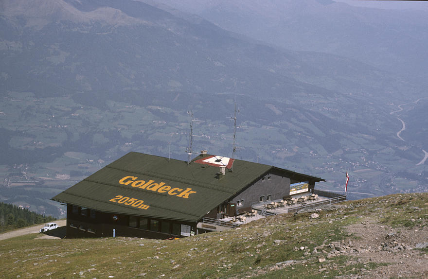 1987. Österreich. Kärnten. Alpen. Berge. Berghüüte Goldeck. Restaurant Alpen