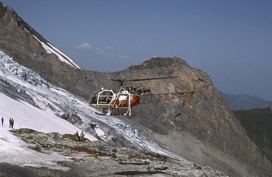1982. Österreich. Kärnten. Hubschrauber im Gebirge Alpen