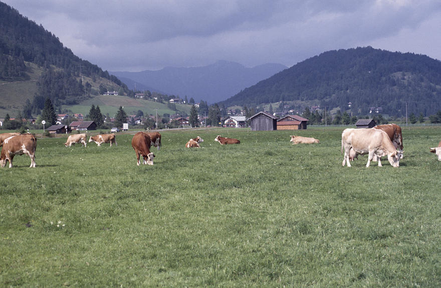 1987. Österreich. Kärnten. Alpen. Berge. Rinder. Kuh. Kühe auf der Weide Alpen