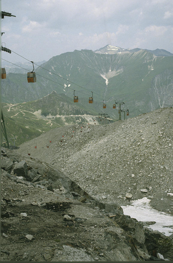 um 1986. Österreich. Alpen. Gebirge. Drahtseilbahn Berge. Alpen