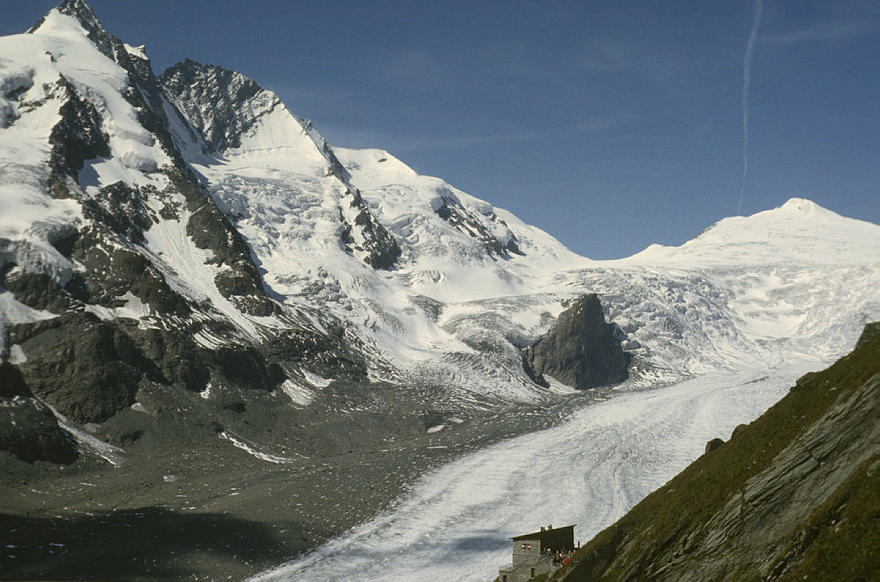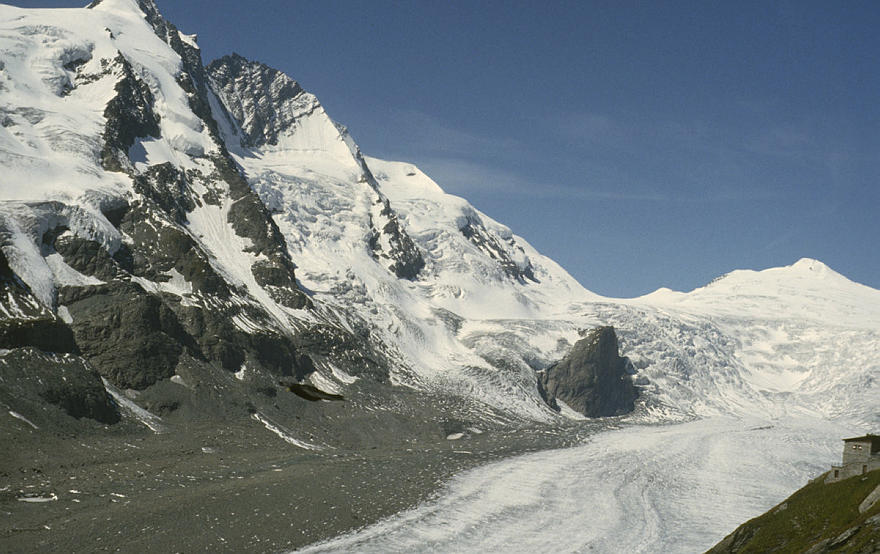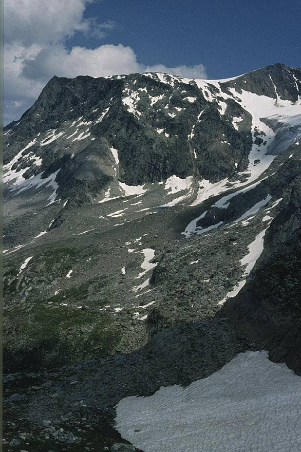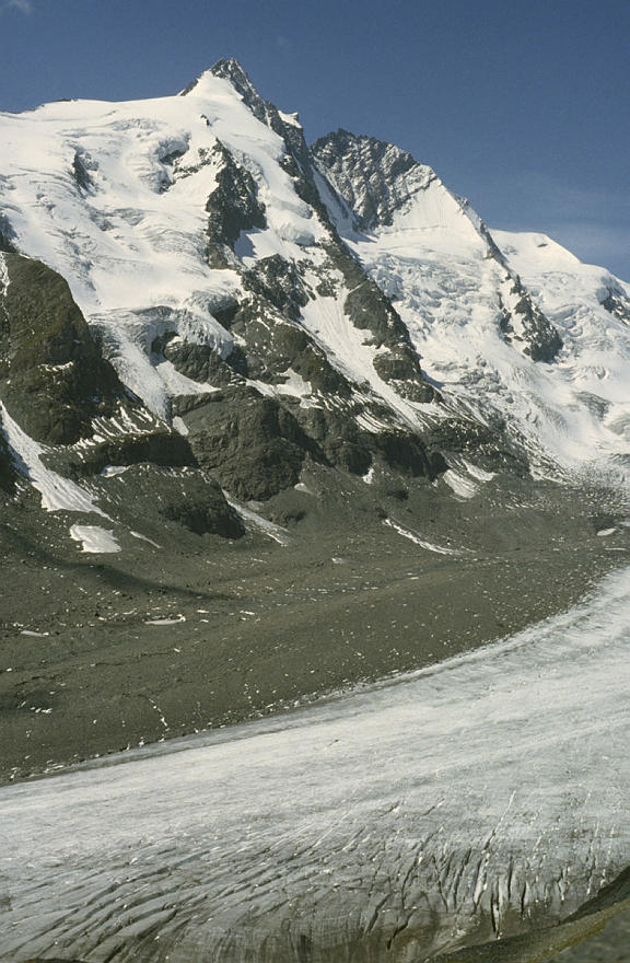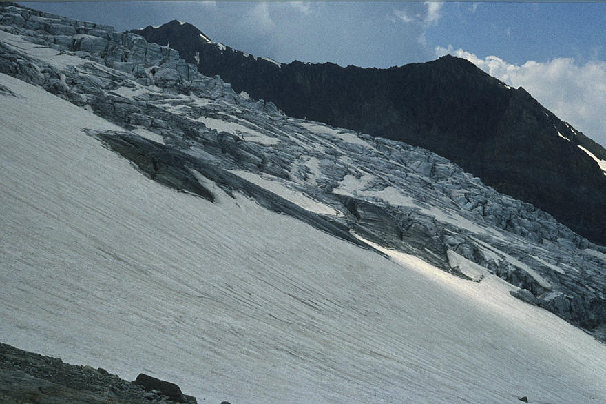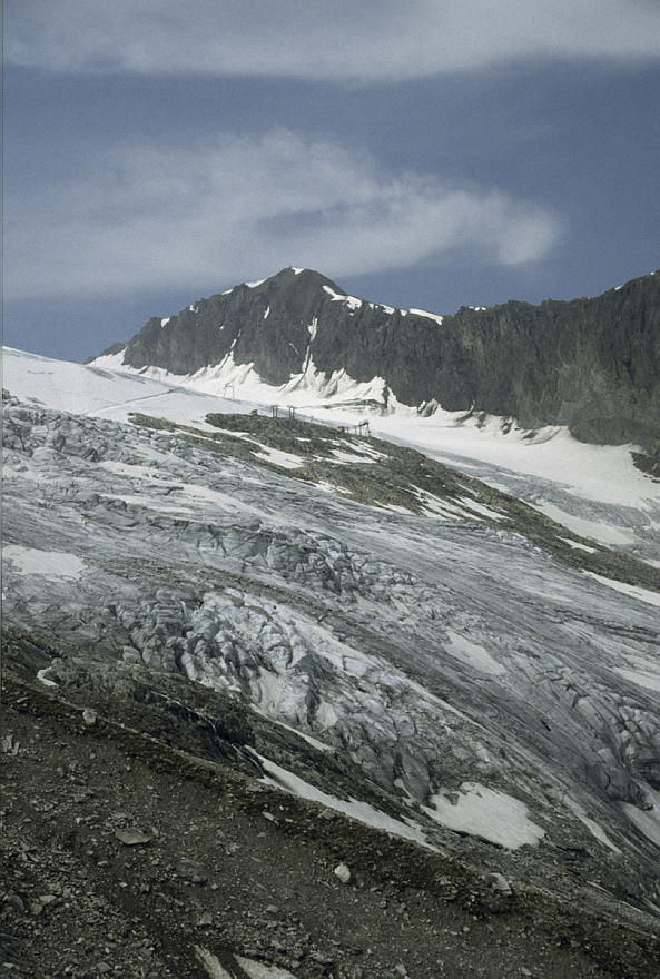 um 1986. Österreich. Alpen. Gebirge. Gletscher. Geröll Berge. Alpen