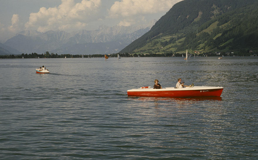 1979. Österreich. Tirol. Kitzbüheler Alpen. Region Söll - Hochsöll. Silleralm. See. Boot
