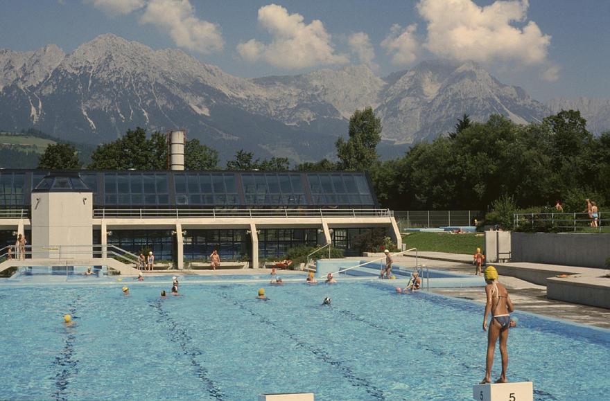 1979. Österreich. Tirol. Kitzbüheler Alpen. Region Söll - Hochsöll. Silleralm. Schwimmbad. Badeanstalt. Swimming Pool