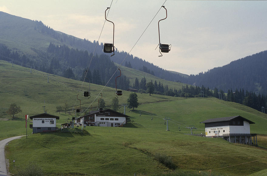 1979. Österreich. Tirol. Kitzbüheler Alpen. Region Söll - Hochsöll. Silleralm. Seilbahn. Doppelsesselbahn Berge. Alpen
