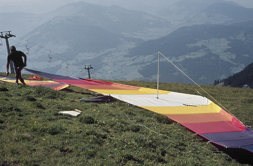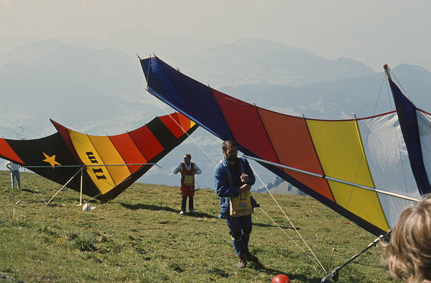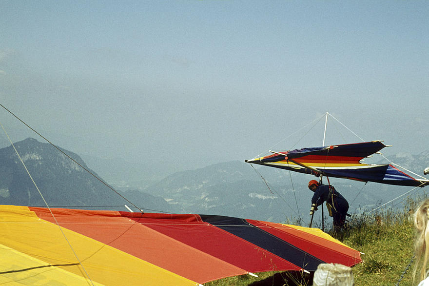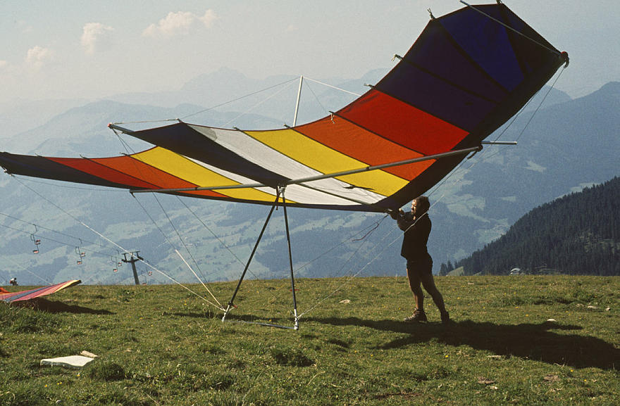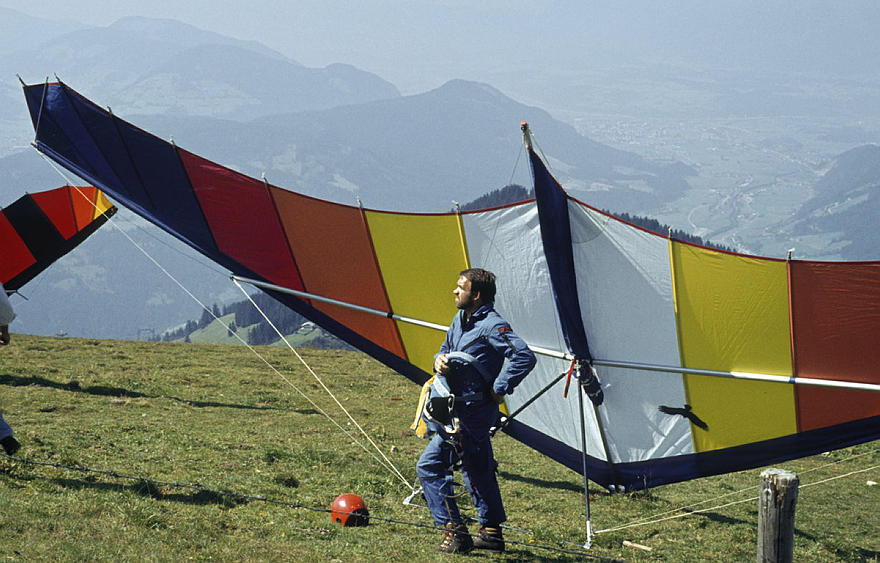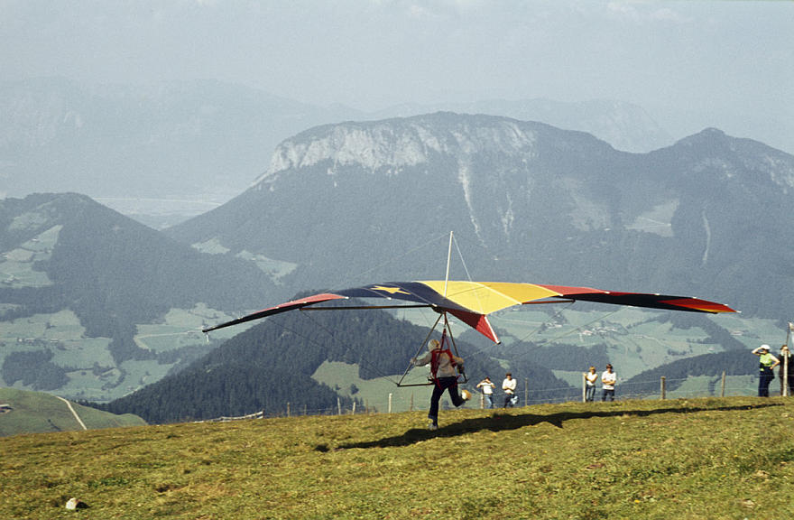 1979. Österreich. Tirol. Kitzbüheler Alpen. Region Söll - Hochsöll. Silleralm. Deltaflieger. Drachenflieger. Berge. Alpen