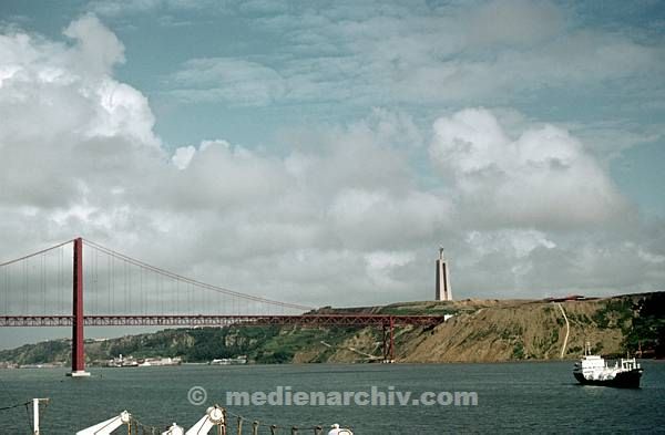 1969. Portugal. Lissabon. Brücke, Christusfigur, Ausfahrt.