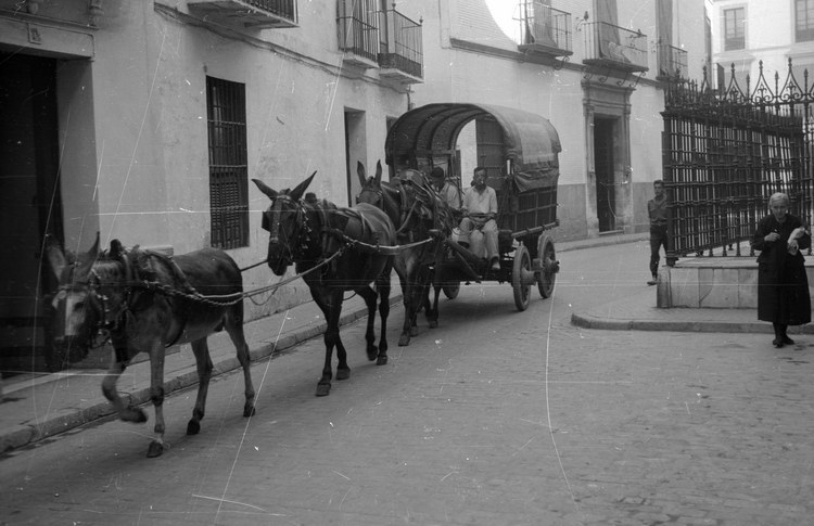 um 1955. Spanien. Spain. Andalusien. Sevilla. Karre. Kutsche mit Pferd und Esel