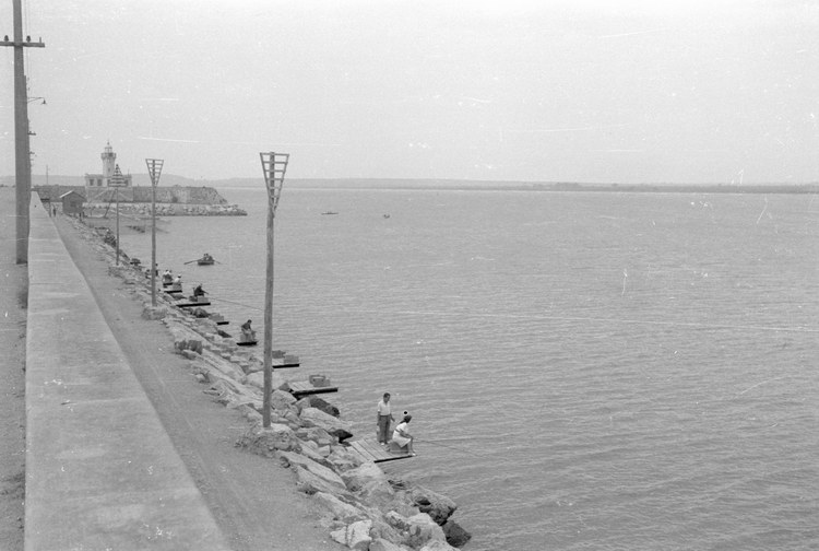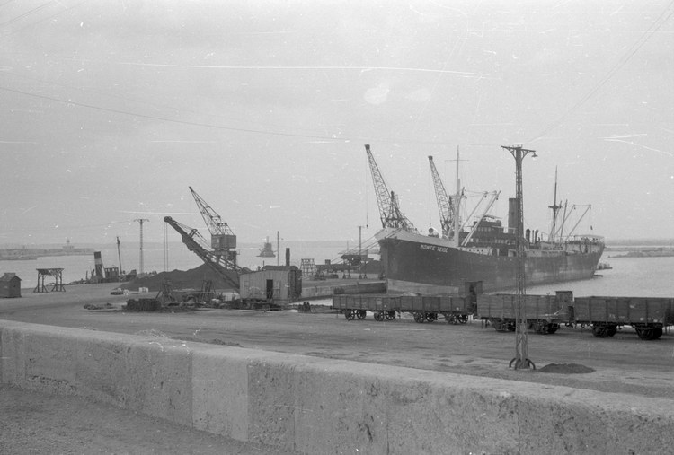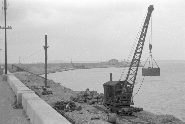 1955. Spanien - Spain - Espana. Katalonien. Tarragona. Küste am Mittelmeer. Kran