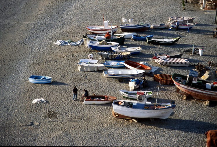 November 2000. Spanien. Andalusien. Costa del Sol. Almunecar. Fischerboote. Strand. Mittelmeer