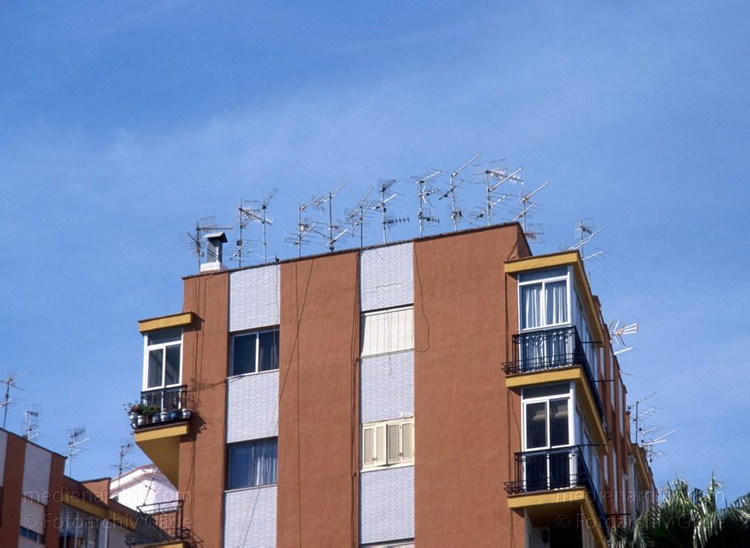 November 2000. Spanien. Andalusien. Costa del Sol. Almunecar. Antennen auf dem Dach