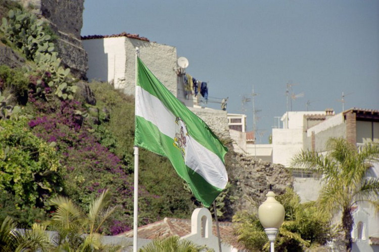 28. 2. 2002. Spanien. Andalusien. Costa del Sol. Almunecar. Parque botánico-arqueológico El Majuelo. Flagge Fahne