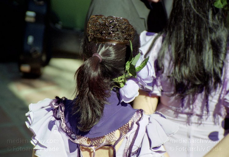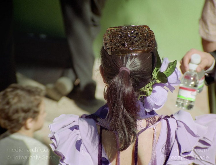 28. 2. 2002. Spanien. Andalusien. Costa del Sol. Almunecar. Dia de Andalucia (Andalusientag) - Feierlichkeiten mit Flamenco - Tanz und Bewirtung im Parque El Majuelo. Frau. Haare