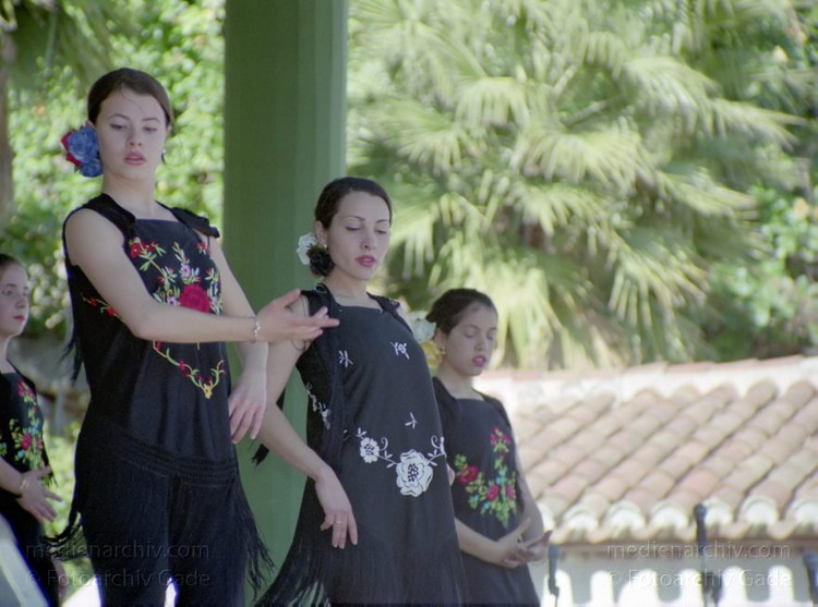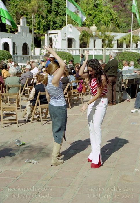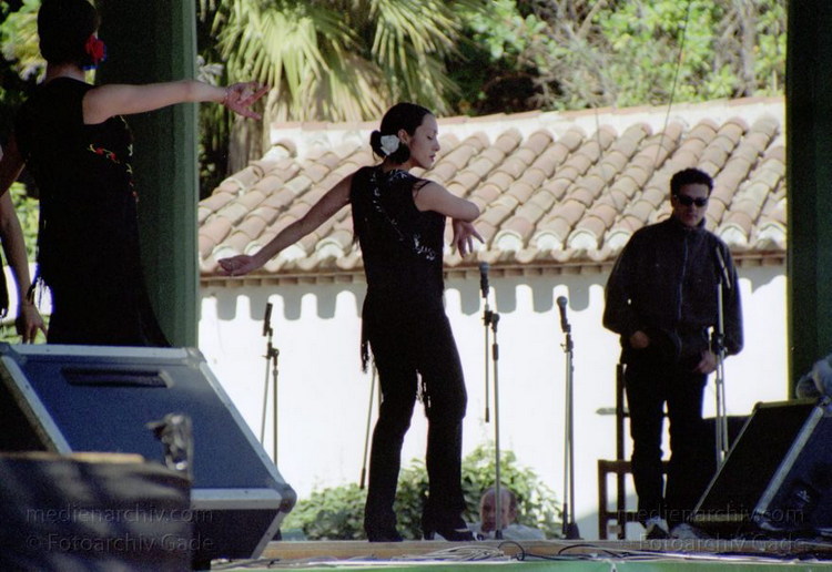 28. 2. 2002. Spanien. Andalusien. Costa del Sol. Almunecar. Dia de Andalucia (Andalusientag) - Feierlichkeiten mit Flamenco - Tanz und Bewirtung im Parque El Majuelo. Tänzerinnen