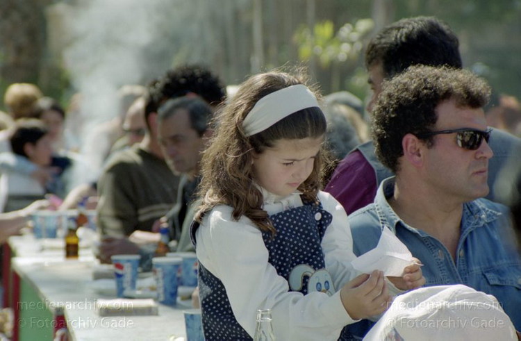 28. 2. 2002. Spanien. Andalusien. Costa del Sol. Almunecar. Dia de Andalucia (Andalusientag) - Feierlichkeiten mit Flamenco - Tanz und Bewirtung im Parque El Majuelo. Zuschauer