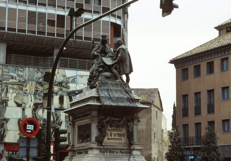 März 1997. Spanien. Andalusien. Granada. Columbus-Denkmal.