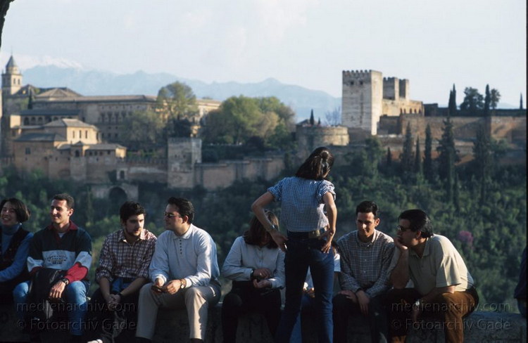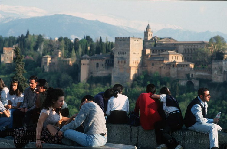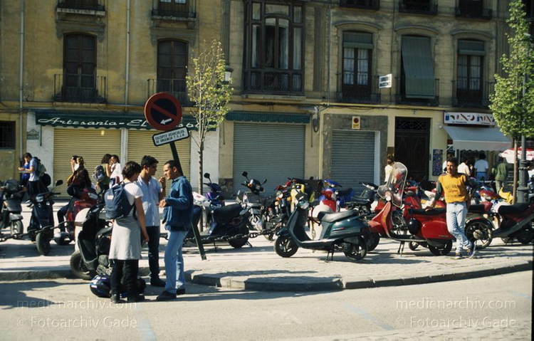 März 1997. Spanien. Andalusien. Granada. Studenten bestimmen das Stadtbild.