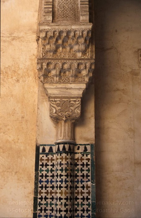 März 1997. Spanien. Andalusien. Granada. Alhambra. Maurische Architektur
