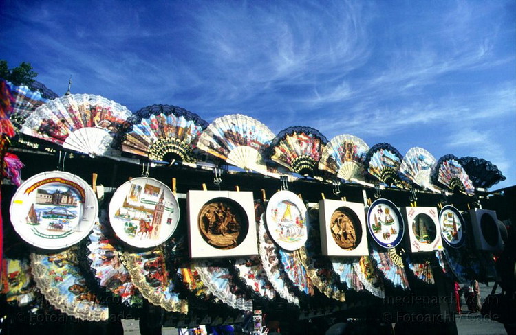 März 1997. Spanien. Andalusien. Sevilla. Fächer und Souvenirs.