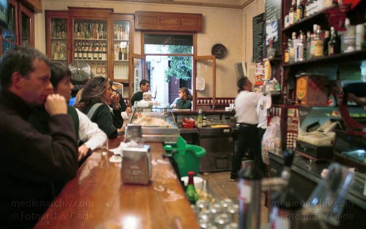 November 2000. Spanien. Andalusien. Sevilla. Theke. Tresen in einem Restaurant
