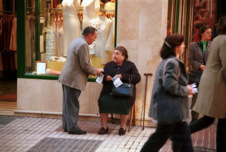 November 2000. Spanien. Andalusien. Sevilla. Einkaufspassage. Losverkäuferin.