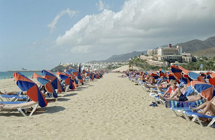 November 2001. Spanien. Kanarische Inseln. Fuerteventura. Jandia Playa. Strand. Urlauber - Canary Islands. Beach
