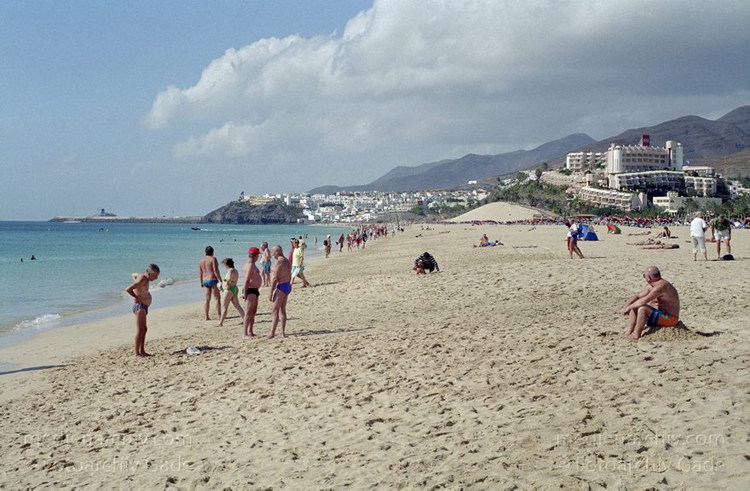 November 2001. Spanien. Kanarische Inseln. Fuerteventura. Jandia Playa. Strand. Meer. Urlauber - Canary Islands. Beach