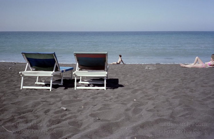 März 1990. Spanien. Kanarische Inseln. La Palma. Meer. Strand. Baden. Sonnen. Urlauber. Atlantik. Liegestuhl. Islas Canarias. Isla de La Palma. Canary Islands Spain.