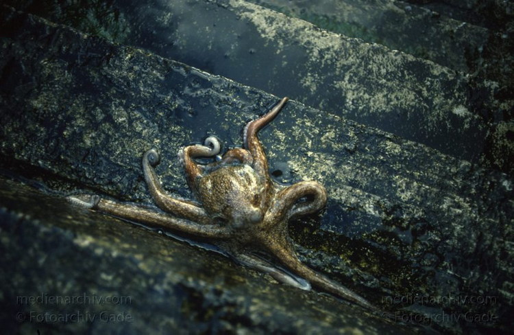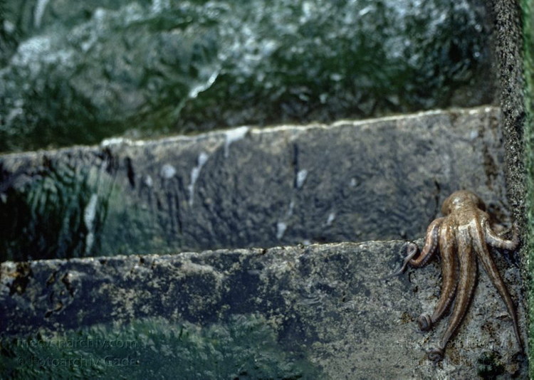 November 1993. Spanien. Kanarische Inseln. Lanzarote. Arrieta - Küste. Meer. Atlantik. Krake